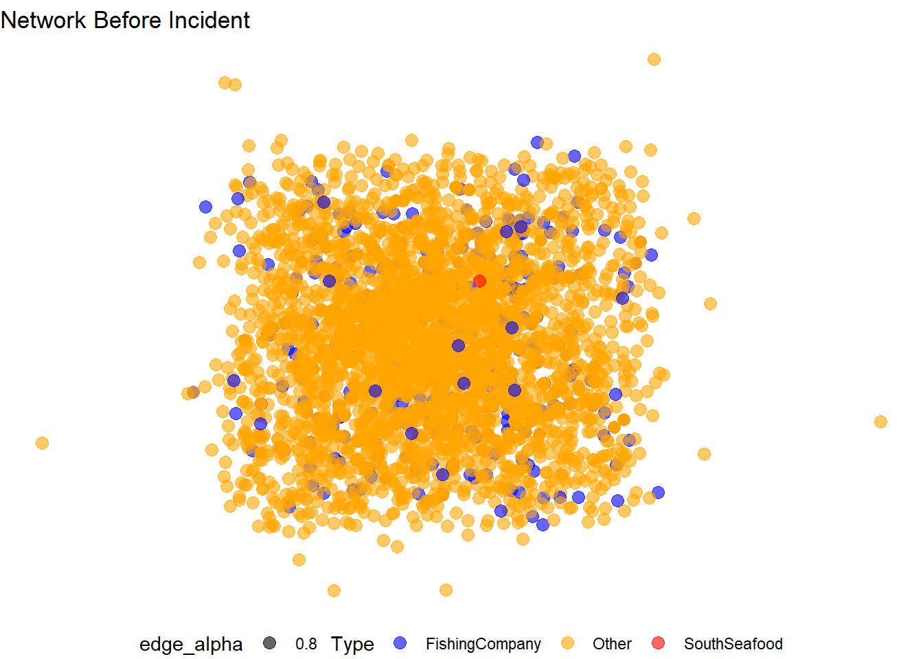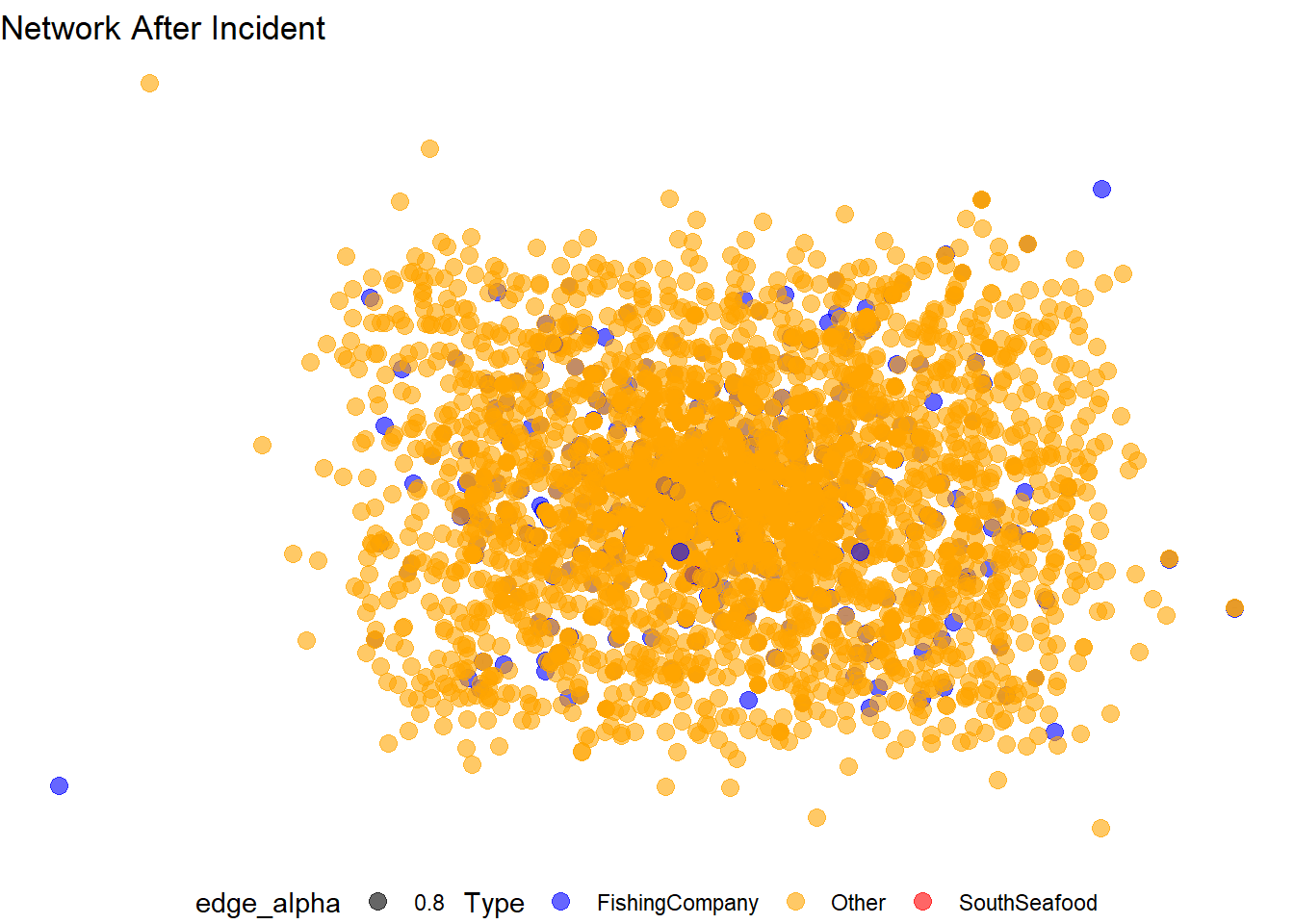 SouthSeafood Express Corp (red node) remains central but its connections might have changed, indicating possible impact from the incident.